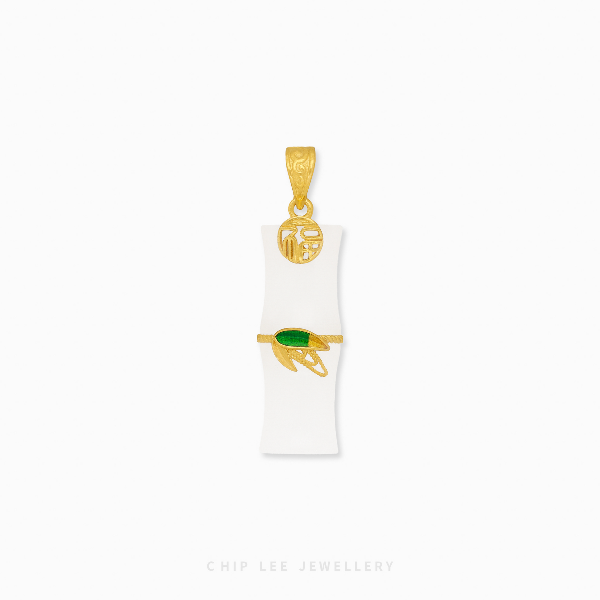 The 999 Pure Gold Bamboo He Tian Jade Pendant is a paragon of strength and resilience through adversity. This gold-accented white jade pendant is believed to bring blessing, protection and harmony. Match with gold studs and sleek silhouettes for a clean, confident finish.