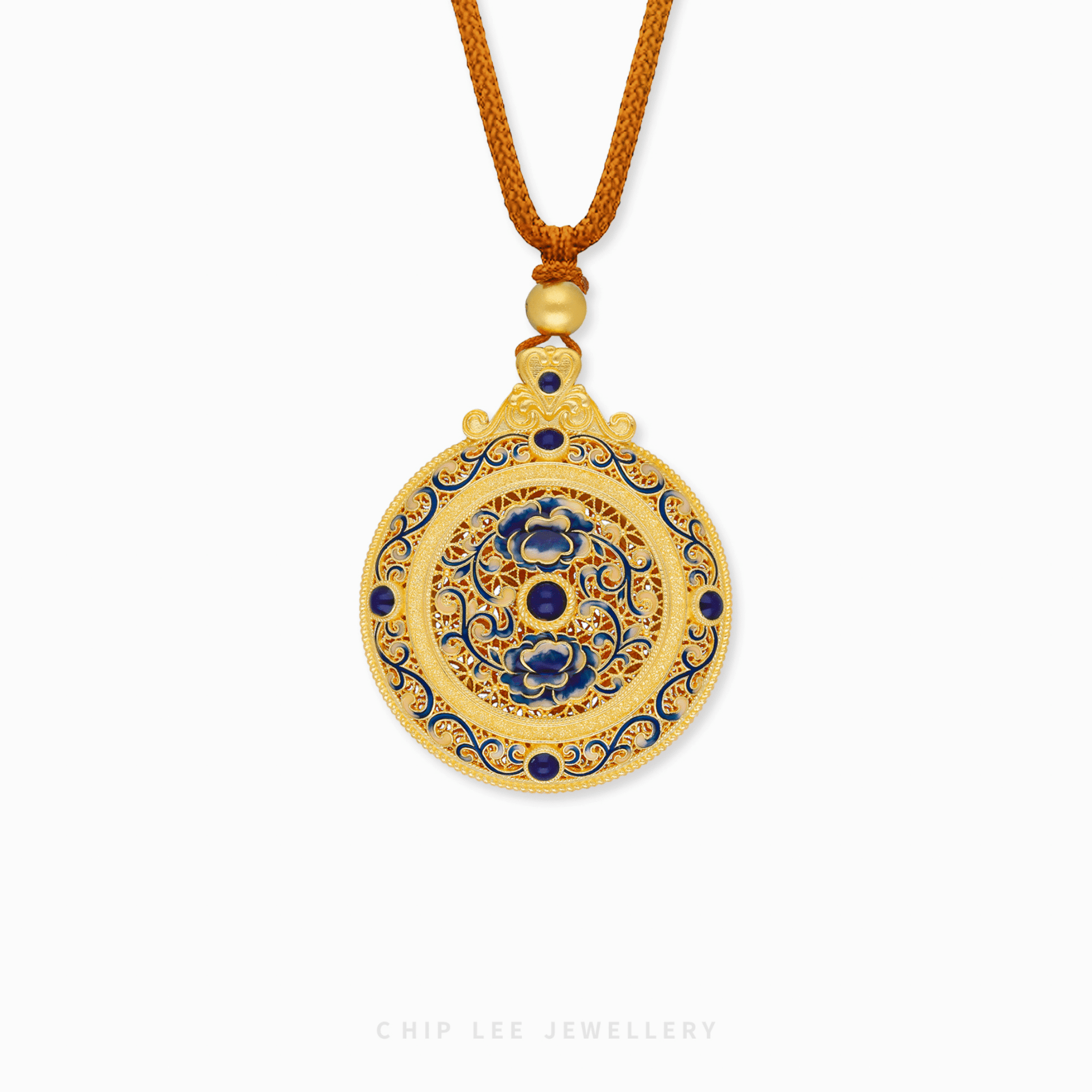 Step into effortless sophistication with the 999 Pure Gold Blue Enamel Batik Gu Fa Jin Necklace. While the vibrant blue evokes clarity and calm, and the gold symbolises wealth and success, its intricate design honours cultural heritage. Bringing you a wearable piece of art and timeless luxury.