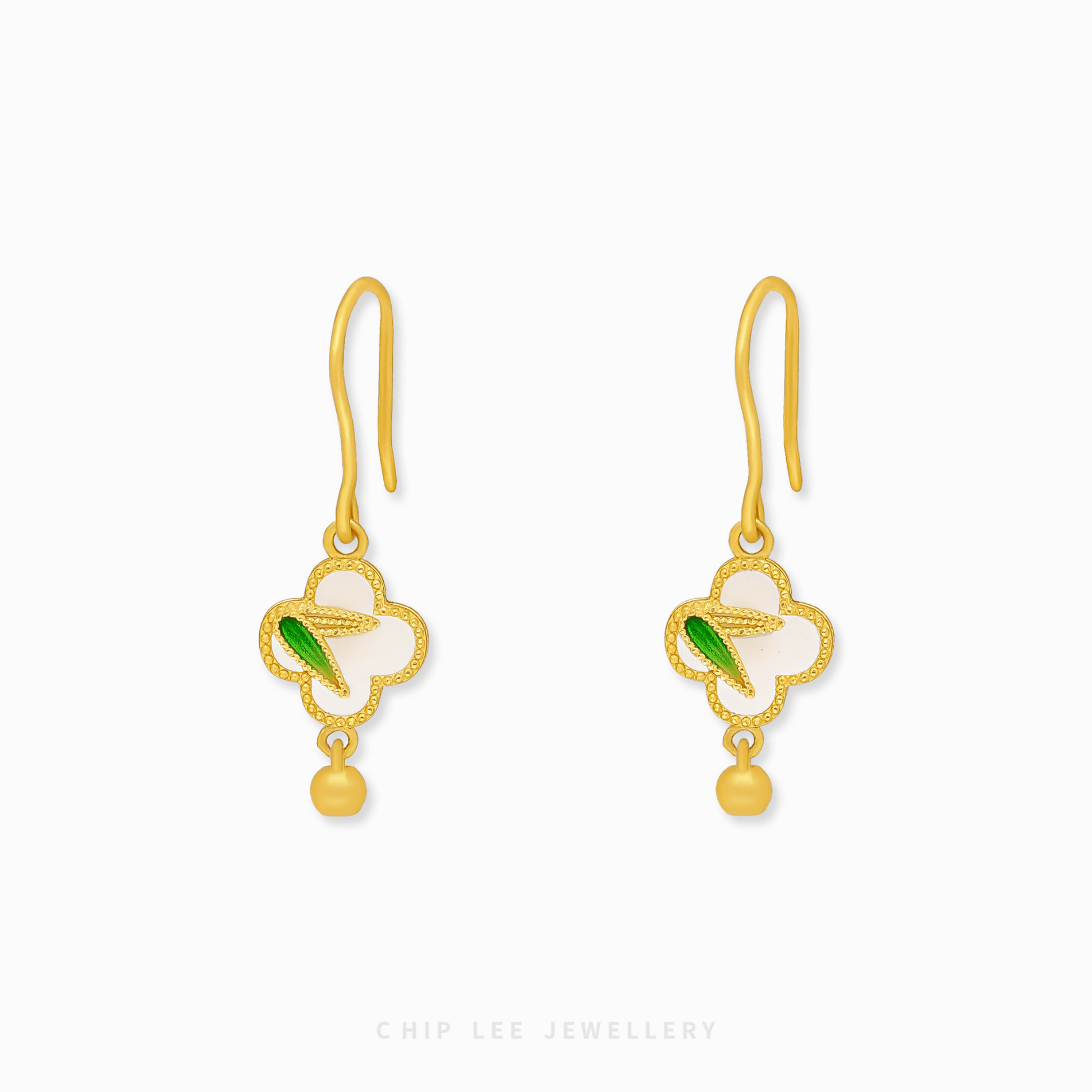 The 999 Pure Gold Clover He Tian Jade Earring features a graceful clover silhouette paired with luminous jade. Symbolizing luck and elegance, this refined design merges timeless tradition with everyday sophistication—perfect for gifting or personal wear.