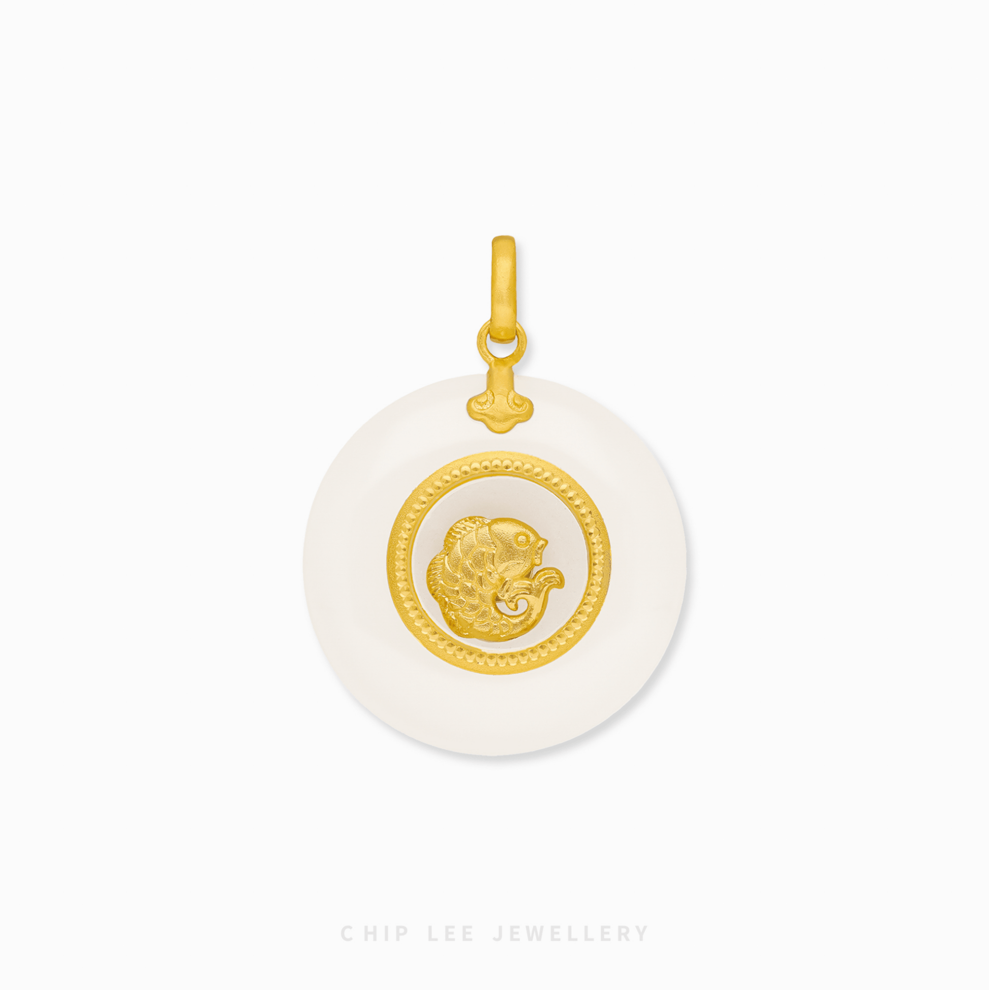 The 999 Pure Gold Fortune Fish Spinning He Tian Jade Pendant features a graceful gold fish paired with a rotating jade core. Representing prosperity and abundance, this elegant piece blends cultural symbolism with fine craftsmanship for meaningful everyday elegance.