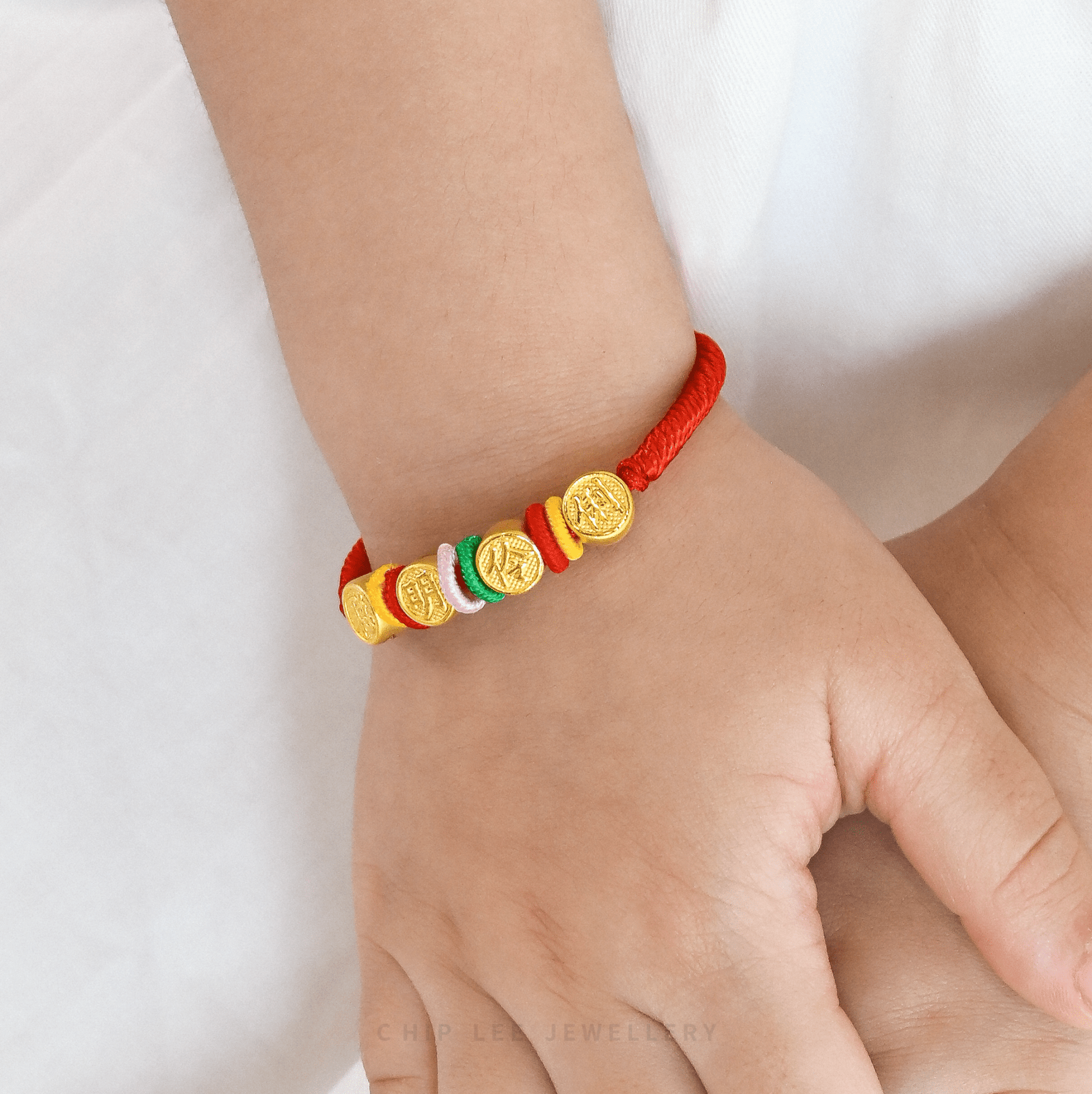 The 999 Pure Gold (聪明伶俐) Cong Ming Ling Li Baby Bracelet is a heartfelt wish for a child to be clever and bright. Its adjustable design ensures that this golden token of wisdom can grow with the child, a constant reminder of your hopes and dreams for them. The perfect gift for a baby shower or a first-year celebration.